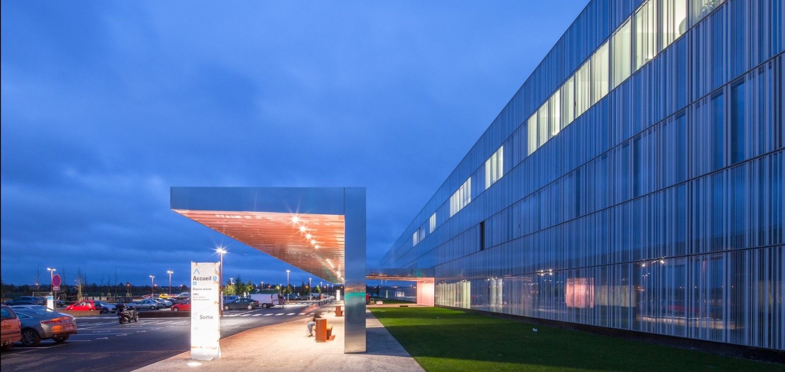 The closed morphology pierced by patios, already experimented on the hospitals of Toulon and Chalon-sur-Saône, ensures the flexibility of occupation of spaces.