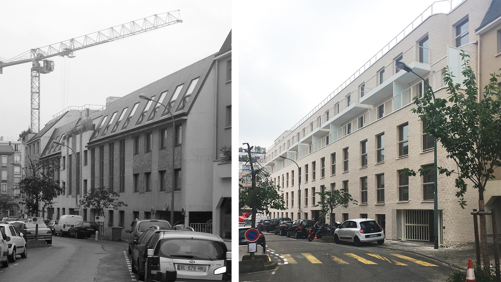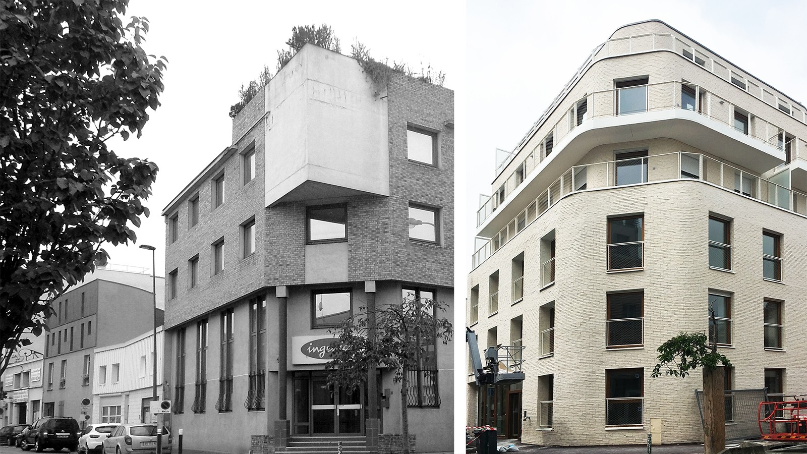 At the corner of rue Curie and rue Emile Duclaux, in the centre of Suresnes, stands a building with a completely renovated look. Visible face of a heavy restructuring and an over-elevation, it is a reconversion of a tertiary building from the 80s into a building of 41 contemporary flats.