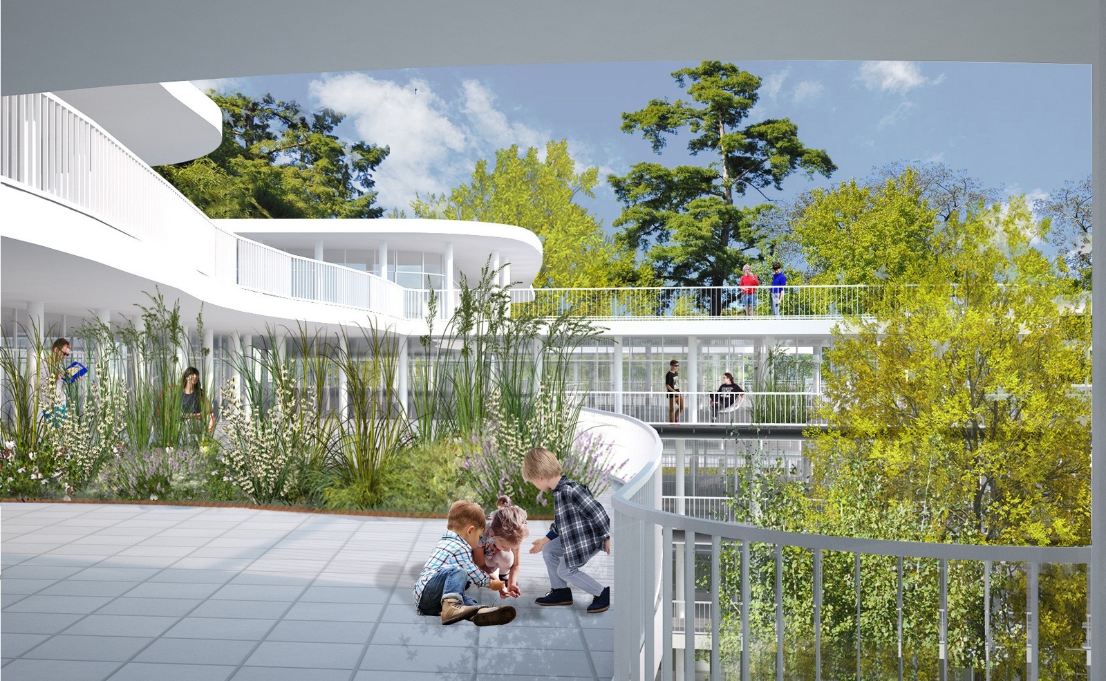 À la fois dressé le long du tramway pour accompagner son mouvement tout en profitant de la desserte de sa station, conçu pour prolonger naturellement la coulée verte par ses jardins suspendus et poursuivre les promenades bucoliques qu’elle invite à faire, le concept propose d’habiter le sous-bois en ville.